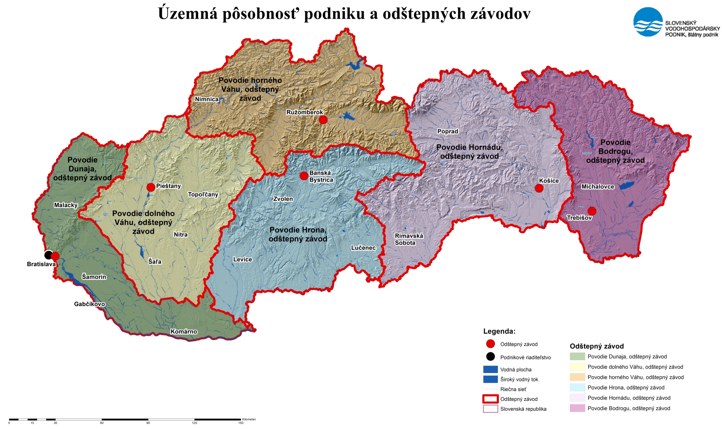 V rámci reorganizácie SLOVENSKÉHO VODOHOSPODÁRSKEHO PODNIKU, štátneho podniku nastala zmena územného členenia podniku. V súčasnej dobe je správa územia zabezpečovaná prostredníctvom šiestich odštepných závodov: Povodie Dunaja, Povodie dolného Váhu, Povodie horného Váhu, Povodie Hrona, Povodie Hornádu a Povodie Bodrogu, zriadených na báze prirodzených povodí.